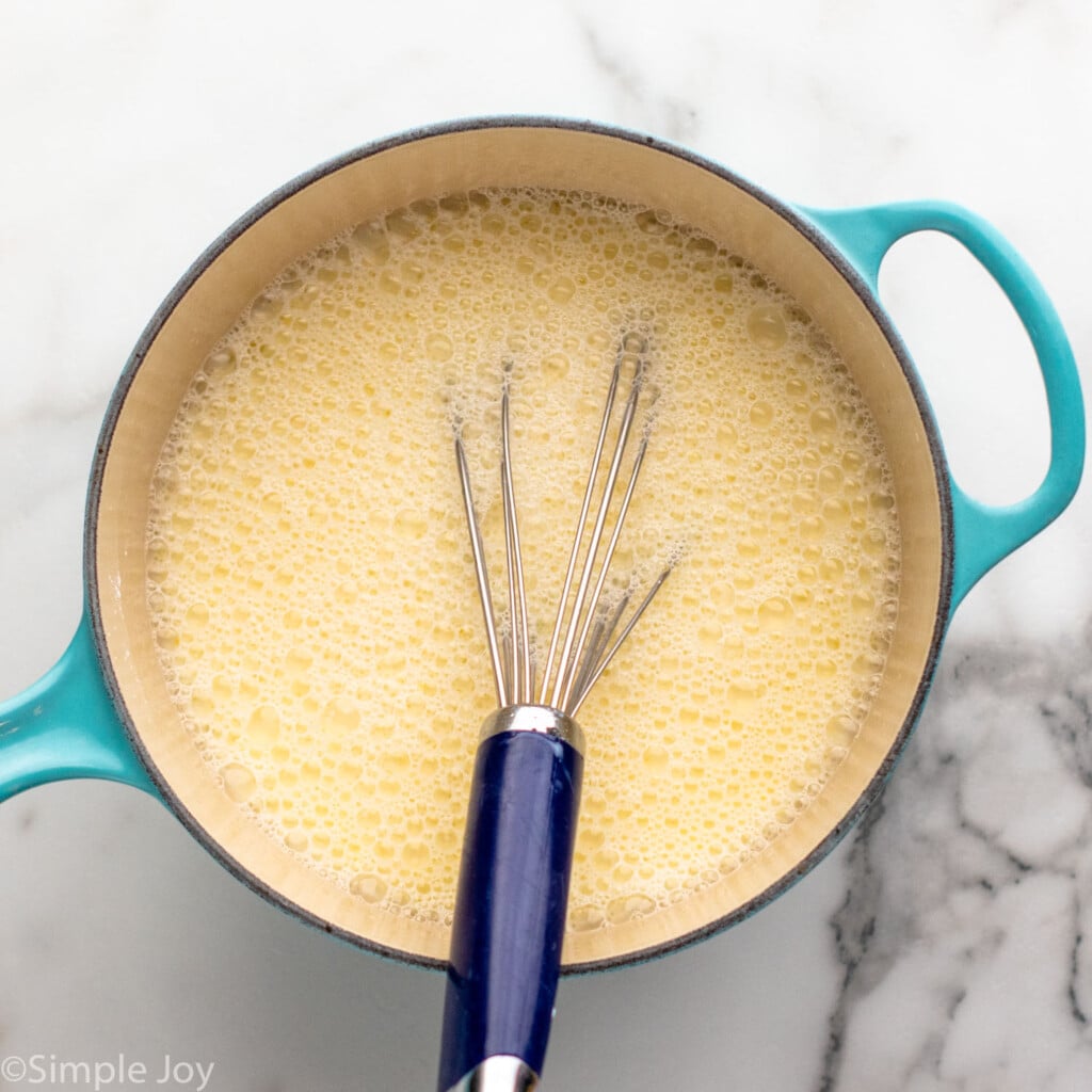 Stir in the butter and vanilla until the butter melts and the mixture is smooth. The result is a smooth, creamy custard that will hold up well in the pie and taste way better than a box of pudding mix.