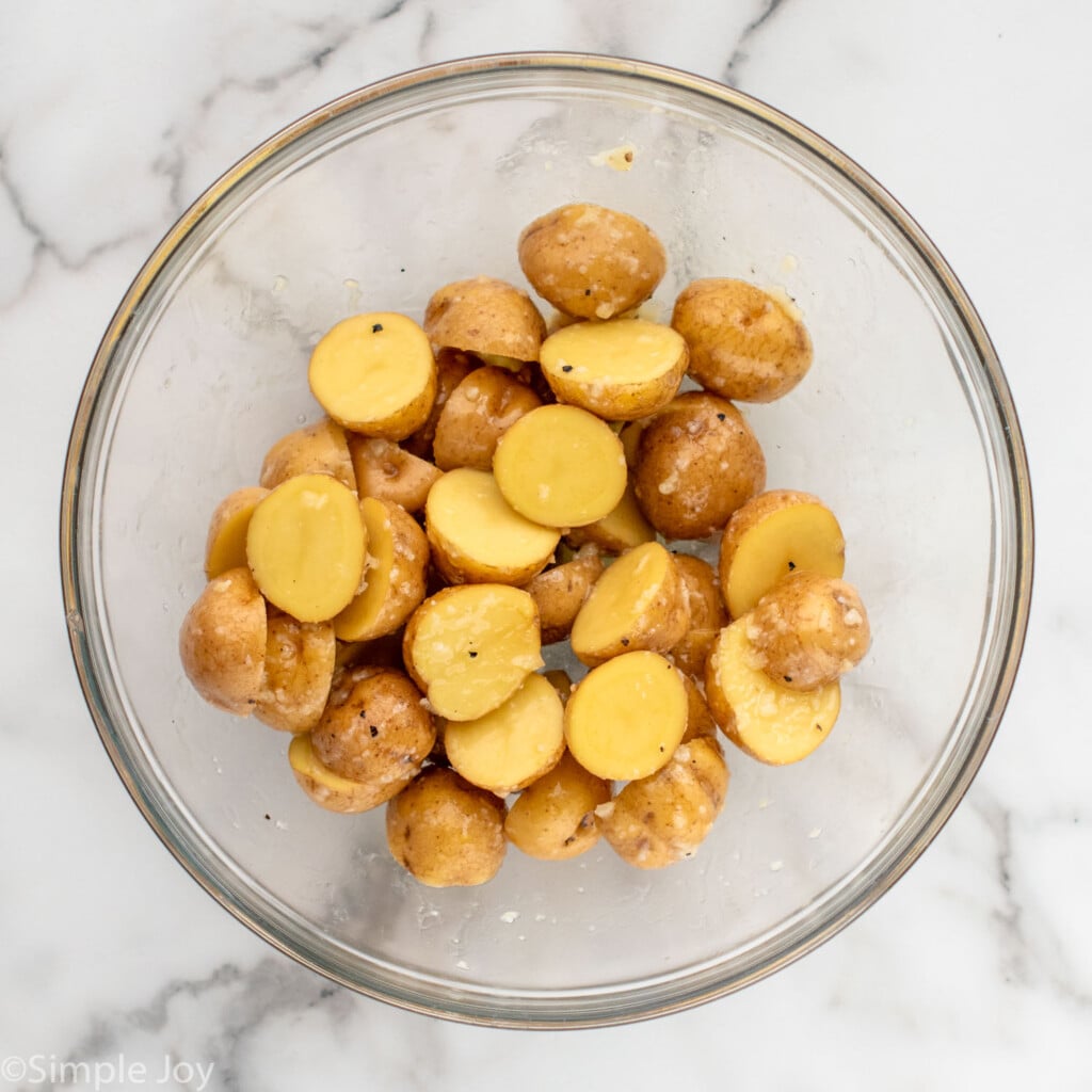 - Any small type of potato will work for this recipe. Make sure that they are smaller than two inches and cut in half. For best results though, stick with creamer potatoes.