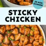 Sticky Chicken will be your new favorite chicken dinner. This dinner is made in about 20 minutes and is so much better than takeout!