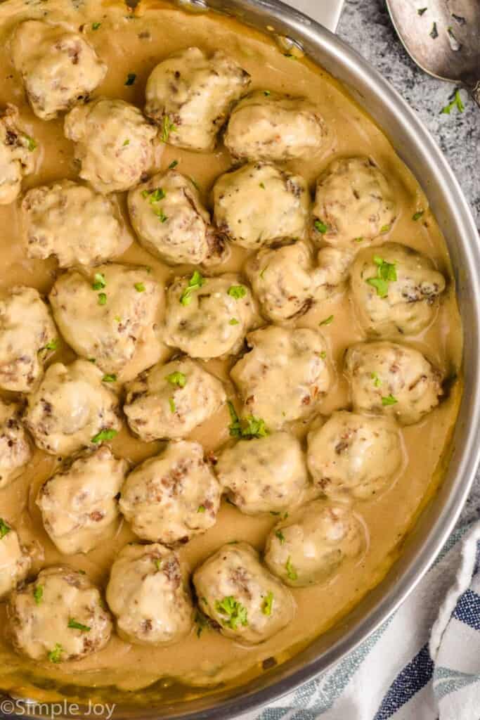 Traditionally, Swedish Meatballs are served with lingonberry preserves. Americans have spun this recipe into a dish served with a thick and rich sour cream based gravy. That is the version you are getting here, and it is nothing short of delicious and comforting. Pan fried in butter with the perfect combination of ingredients leaves you with a meatball that is crisp on the outside and tender and flavorful on the inside.