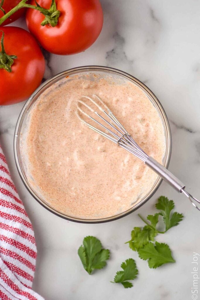This recipes comes together so quickly. Combine all the ingredients in a bowl. Whisk together until smooth.